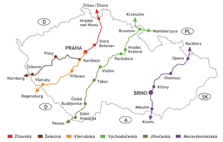 Trasy Svatojakubských cest v na území českých krajů - viz. web Ultreia.