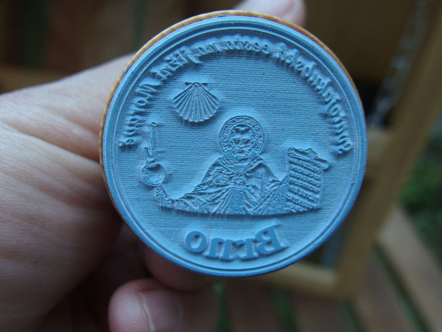 - speciální dřevěné poutnické razítko se sv. Jakubem, logo mušle a označení obce + různobarevnou podušku