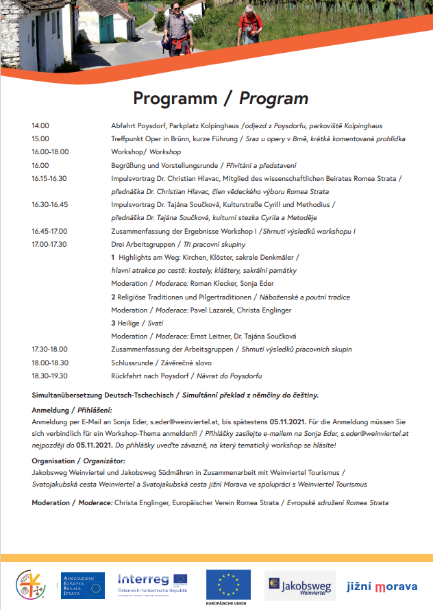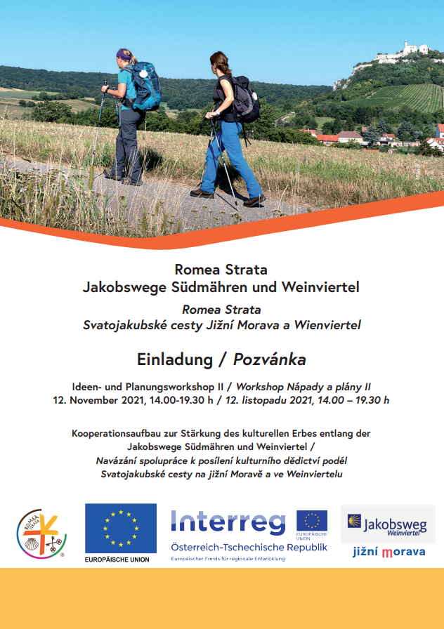 Zveme všechny příznivce poutnictví na již druhý mezinárodní workshop (dílnu) v rámci spolupráce Svatojakubských poutních cest s poutními cestami Romea Strata. Workshop proběhne již tento pátek 12. listopadu od 15 do 18:30 hodin ve městě Brně.