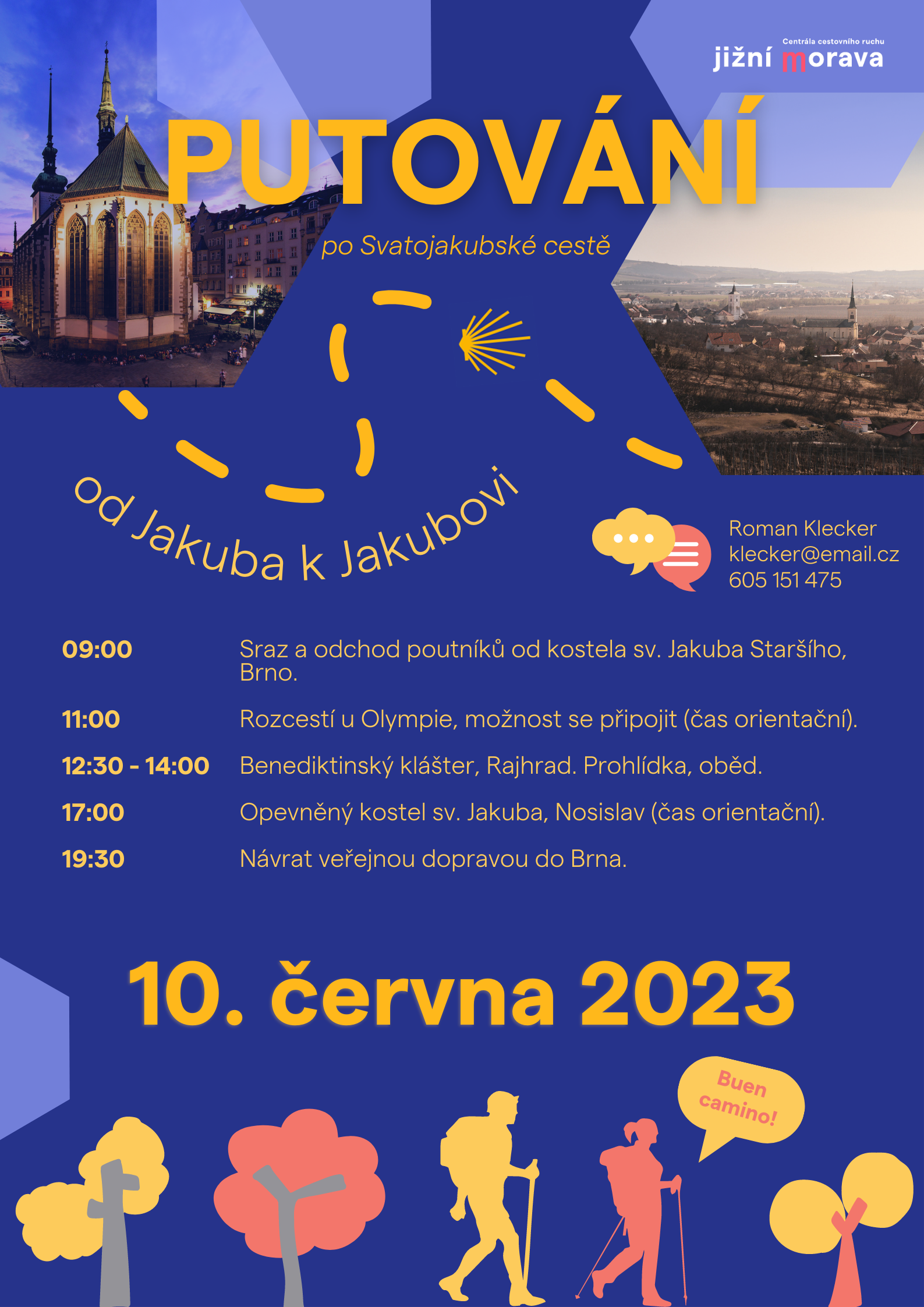Sejdeme se v sobotu 10. června v 9 hodin u poutnické budky na vchodových dveřích kostela sv. Jakuba Staršího v Brně na Jakubském náměstí.